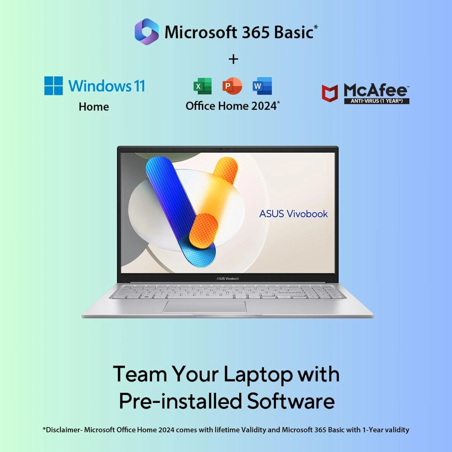 - Software: Includes Microsoft Office Home 2024 and M365 Basic (1 Year)